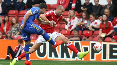 W porównaniu do zeszłotygodniowego meczu z Sheffield Wednesday Garry Monk dokonal jednej zmiany w składzie. Alexa Mowatta zmienił na lewej pomocy Pablo Hernandez. Hiszpan był też najaktywnijszym zawodnikiem Leeds na początku meczu. Przejawiający sporą ochotę do gry zawodnik co chwila próbował niekonwencjonalnych podań, które otworzyłyby drogę do bramki naszym napastnikom. W 7 minucie meczu były gracz Swansea sam uderzył na bramkę, ale piłka jego strzale poszybowała obok bramki. Następne zagrożenie stworzyli już gospodarze. Oliver Burke zdołał oddać strzał po rzucie rożnym, ale tym razem zatrzymał go Rob Green. W 16 minucie były reprezentant Anglii był już bezradny. Po kolejnym rzucie rożnym do piłki znowu pierwszy dopadł Burke, zgrał ją do Kasamiego, ale ten z najbliższej odległości otworzył wynik tego spotkania. Pawie próbowały odpowiedzieć jeszcze strzałami Bridcutta i Taylora, ale te minęły bramkę Stephana Hendersona. Celny strzał oddał Antonsson, ale bramkarz Forest stanął na wysokości zadania.