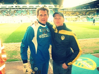 Robili zakupy oraz pamiątkowe zdjęcia pod pomnikiem. Następnie udaliśmy się do stadionowej knajpki gdzie zbierali się miejscowi kibice. Na dwie godziny przed meczem wyszliśmy jeszcze coś zjeść i pokręcić się pod stadionem. Ludzi w barwach była już masa. Kolejka na zewnątrz do sklepiku dość spora, okupywany pobliski McDonald, w którym byli również kibice z Brighton. Oczywiście sporo policji tej na koniach również. Ponad godzinę przed meczem udajemy się na trybunę John Charles Stand (West Stand) tą, z której wychodzą piłkarze na przeciwko East Sand. Miejsca w 6 rzędzie tuż nad ławkami rezerwowych. Przed meczem oczywiście poruszaliśmy się po całym stadionie w celu zrobienia ciekawych fotek. Przed samym meczem fajnie zachował się Tomek Kuszczak poproszony o zdjęcie ruszył w moim kierunku pomimo tego iż zbiegał już do szatni, a i barwy nie "po drodze" :)MECZ
