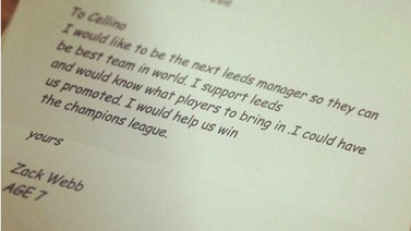 Jeśli żaden z wyżej wymienionych kandydatów nie okaże się wystarczająco dobry, bądź jego sprowadzenie będzie nierealne Massimo Cellino wciąż może wybrać kandydaturę Zacka Webba, czyli 7-letniego kibica Leeds, który złożył podanie o przyjęcie pracę na stanowisku trenera United (podanie młodzieńca możecie zobaczyć na zdjęciu obok).
