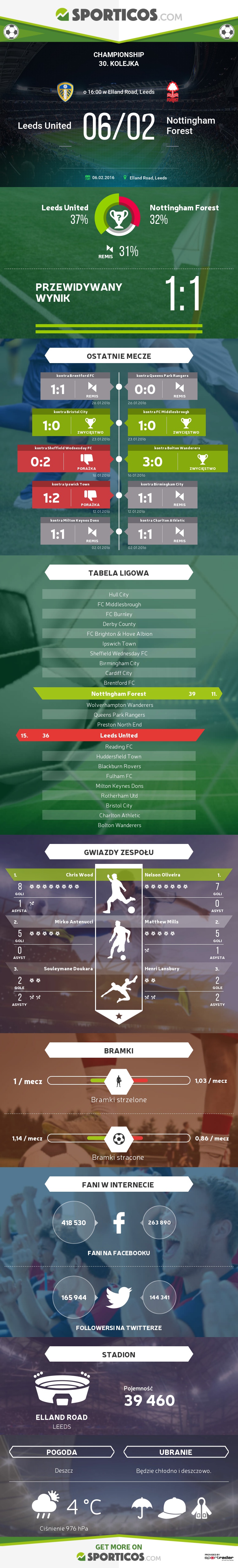 Drużyna z Nottingham nie przegrała w lidze od 21 listopada, kiedy uległa na wyjeździe Brentford 1:2. Kolejne spotkania to remisy i zwycięstwa. W styczniu podopieczni Dougiego Freedmana zdobyli łącznie 12 punktów za trzy zwycięstwa i tyle samo remisów. Przegrali jedynie w ostatnim spotkaniu Pucharu Anglii z Watfordem, z którym to Leeds zmierzy się w następnej rundzie. Leśnikom udało się pokonać na wyjeździe, aspirujące do awansu Middlesbrough 1:0. W skrócie można więc powiedzieć, że forma Nottingham jest bardzo wysoka, czego w żadnym wypadku nie odzwierciedla miejsce w tabeli.