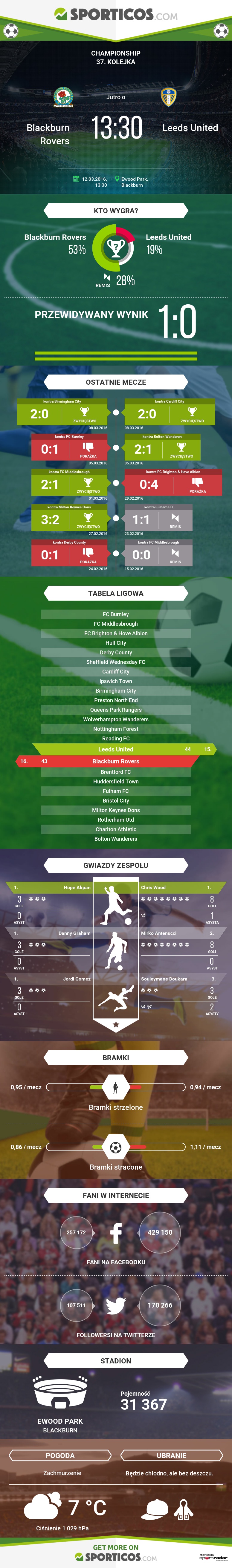 Po wyjazdowym zwycięstwie nad Cardiff City piłkarze Leeds United będą chcieli podtrzymać serię zwycięstw w jutrzejszym wyjazdowym meczu przeciwko Blackburn Rovers. Początek tego spotkania o 13:30 czasu polskiego.