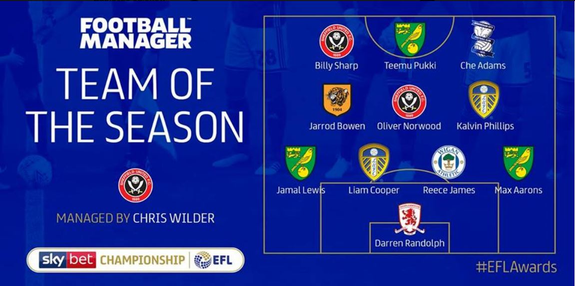 Dwóch zawodników Leeds United znalazło się w najlepszej 11-tce sezonu Championship wybranej przez EFL. Docenieni przez władze ligi zostali kapitan Pawi Liam Cooper oraz wychowanek The Whites Kalvin Philips. Dość nieoczekiwanie pominięci zostali Pontus Jansson oraz Pablo Hernandez. Najlepszym menadzerem sezonu na 8 kolejek przed końcem sezonu wybrano Chrisa Wildera.