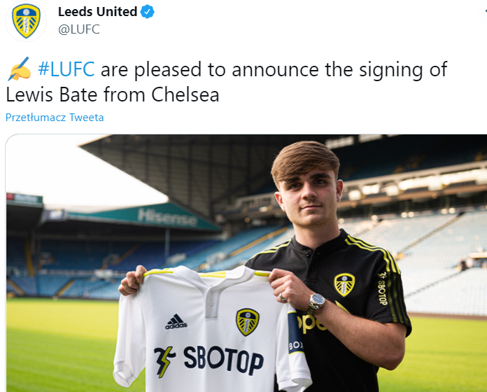 Kapitan finalistów FA Youth Cup z 2020 roku oraz członek wicemistrzów młodzieżowej Premier League z poprzedniego sezonu Lewis Bate dzisiaj oficjalnie przeniósł się z Chelsea Londyn do Leeds United. 18-letni środkowy pomocnik podpisał z The Whites 3-letni kontrakt. Wg nieoficjalnych informacji Pawie za wychowanka Chelsea zapłaciły około 1.5 mln funtów i w umowie zawarty jest także procent kolejnych transferów Bate'a.