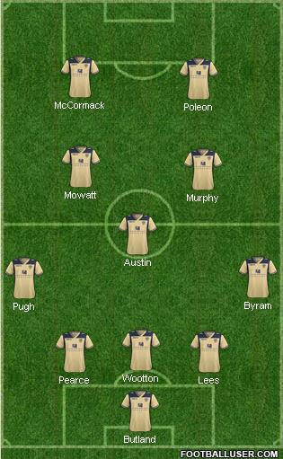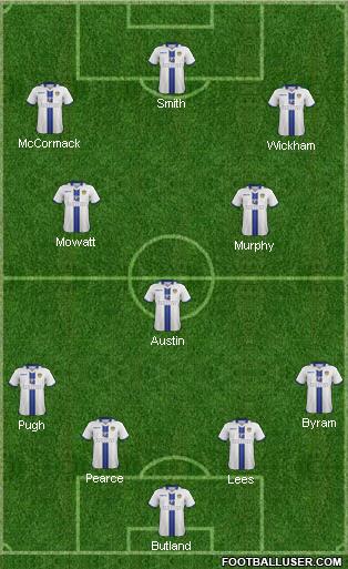 Butland – Pugh, Lees, Pearce, Byram – Mowatt, Austin, Murphy – Wickham, McCormack, Smith.