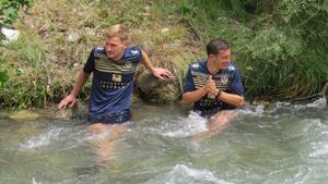 Po ciężkich treningach w górskich ośrodkach piłkarze Pawi regenerują się kąpielą ... w górskiej rzece. Trener przygotowania fizycznego Matt Pears tłumaczy słuszność takich kroków: