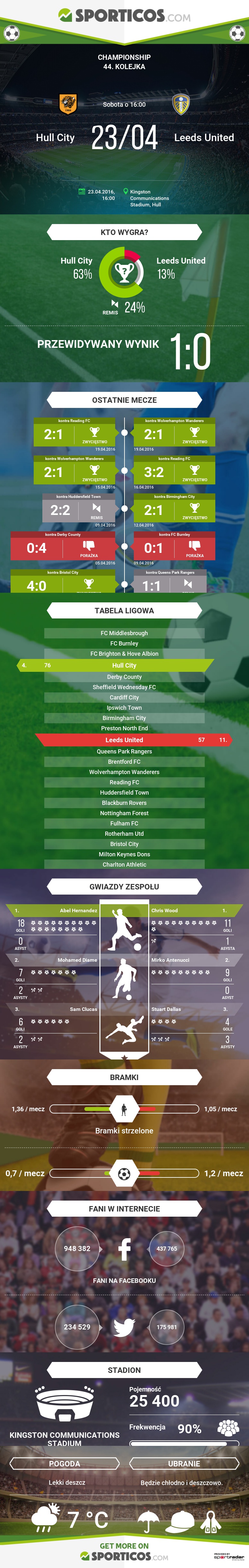 Obydwa zespoły prezentują ostatnio zbliżona formę, tj. po serii słabszych występów notują passę zwycięstw. W przypadku gospodarzy ta passa wynosi 2 mecze, w przypadku United 3. Co ciekawe ostatnie dwa mecze zarówno Hull jak i Leeds grały z Reading i Wolves i obydwa zespoły wygrały te spotkania różnicą 1 bramki (Reading:Hull 1:2, Hull:Wolves 2:1 i Leeds Reading 3:2, Leeds:Wolves 2:1).