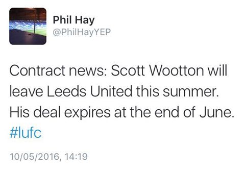 Na zakończenie prawdziwa bomba! Scott Wootton odchodzi z Leeds United!!! Jak właśnie podał Phill Hay kontrakt obrońcy wygasa z końcem bieżącego sezonu i Leeds nie zamierza go przedłużać! W lutym klub poinformował o przedłużeniu umowy z Woottonem o kolejny sezon, ale w praktyce kontrakt nigdy nie został prolongowany.