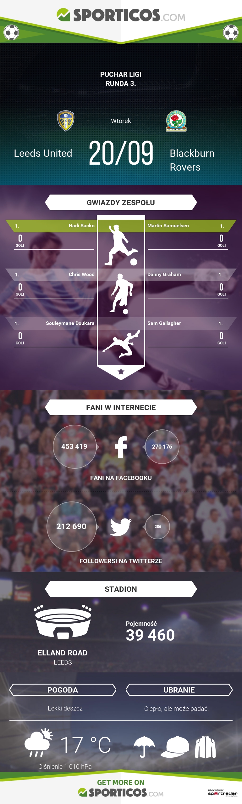 Dokładnie tydzień minął od ostatniej potyczki Leeds z Blacburn na Elland Road. W zeszły wtorek Pawie wygrały z Rovers 2:1 i rozpoczęły marsz w górę tabeli Championship (miejmy nadzieję, że jak najdłuższy marsz zakończony dotarciem na szczyt), teraz jednak na jeden wieczór zapomnijmy o lidze i skupmy się na EFL Cup jak w tym roku zwany jest League Cup. To właśnie w ramach tych rozgrywek United podejmie dziś na ER Rovers i miejmy nadzieję awansuje do kolejnej rundy. Początek meczu o 20:45 czasu polskiego.