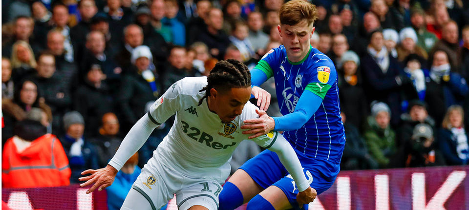 Leeds mecz rozpaczeło ze sporym animuszem. Ju wpierwszej akcji Patrick Bamford zaprosił do gry Heldera Costę, ten wpadl w pole karne, nawinął Toma Pearce'a i oddal strzał, który jednak zdołał odbić David Marshall. W 7 minucie spotkanie na lewym skrzydle z 3 obrońcami zatańczył Jack Harrison. Skrzydłowy Leeds znakominicie poradził sobie z defensorami The Latics i zdołal oddać strzał, który niestety zatrzymał się na słupku bramki Marshalla. Kolejna szana należała na Bamforda, który poszedł w pojedynek jeden na jeden i strzelił prawą nogą jednak prosto w bramkarza Wigan. Kolejną sytuację napastnik Leeds miał już obowiązek wykorzystać. Prawym skryzdłem szarpnąl klich, który wyłożył piłkę do Bamforda, ten jednak fatalnie skiksował i piłka sadla tylko pod nogi Costy, który posłał ją w trybuny. W 33 minucie najlepszą okazje zmarnował z kolei Jack Harrison. Po dwójkowej akcji Costy i Bamforda, ten drugi dośrodkował na dalszy słupek, a tam dopadł do niej Harrison. 23-latek nie oddał czystego strzału, póxniej próbowal jeszcz gonić piłke i oddac strzał piętą, jednak nieudolnie.
