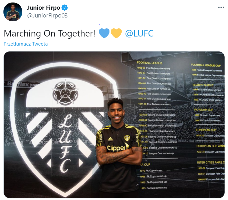 Po Amarai Millerze i Jacku Harrisonie dzisiaj Lees United dopięło 3 transfer tego lata. 4-letni kontrakt z klubem podpisał Junior Firpo. 24-letni Hiszpan na Elland Road przeniósł się z Barcelony za około 15 mln Euro. Nowy lewy obrońca Leeds odbył w ostatnich dniach już całą wymaganą kwarantannę i może zacząć treningi pod okiem Marcelo Bielsy. W nadchodzącym sezonie będzie grał z numerem 3 na koszulce.