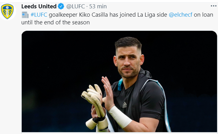 Dzisiaj Leeds United poinformowało, że następnego sezonu na Elland Road nie spędzi Kiko Casilla. Hiszpański bramkarz wróci do ojczyzny, gdzie zagra w Elche. Casilla do klubu Primera Division został wypożyczony na rok.