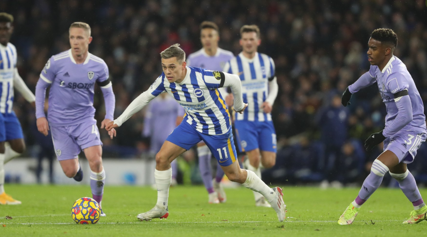 Marcelo Bielsa w wyjściowym składzie dokonał trzech zmian w składzie. Zgodnie z oczekiwaniami do wyjściowej 11 wskoczyli Raphinha i Rodrigo Moreno. Dość nieoczekiwanie Struijka zmienił Junior Firpo. Marcelo Bielsa po meczu przyznał, że młody Holdender nie był gotowy do gry przez cały mecz. I to właśnie stroną Firpo Brighton atakowało najczęściej. Tam świetnie dysponowany był Tariq Lamptey. Młody Anglik już w pierwszych minutach uciekł Firpo i dośrodkował w pole karne do Jakuba Modera, ale reprezentant Polski posłał piłkę nad poprzeczką. Chwilę później znowu dośrodkowywał Lamptey, a tym razem po rykoszecie piłki trafiła do obstawionego na dalszym słupku Neala Muapay, ale Fracuz mając 100% sytuację oddał niecelny strzał. W dalszej fazie meczu to wciąż gospodarze napierali i zaczęli strzelać takźe celniej, ale Illan Meslier stawał na wysokości zadania. Meslier najpierw wyłapał kąśliwy strzał Muapaya, a chwilę później zgłosił swoją kandydaturę do parady koljeki, kiedy opuszkami palców sparował na słupek bombę Trossarda. Leeds pod bramkę gospodarzy przedostwało się dość okazjonalnie i The Whites w pierwszej połowie nie byli poważniej zagrozić bramce Roberta Sancheza.